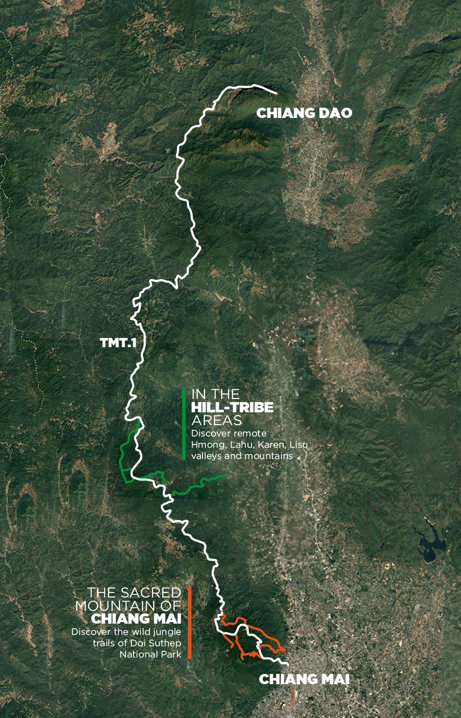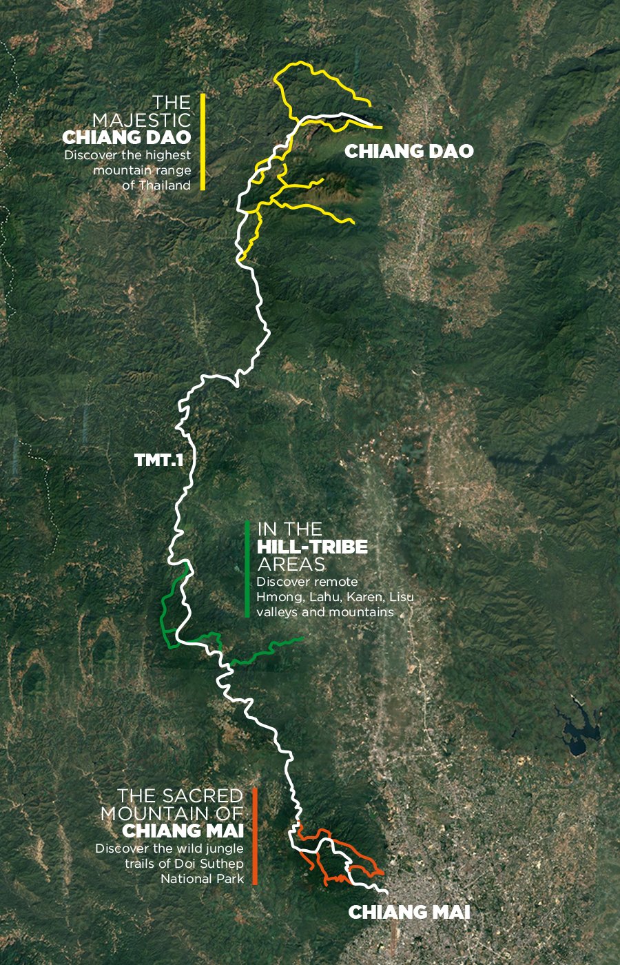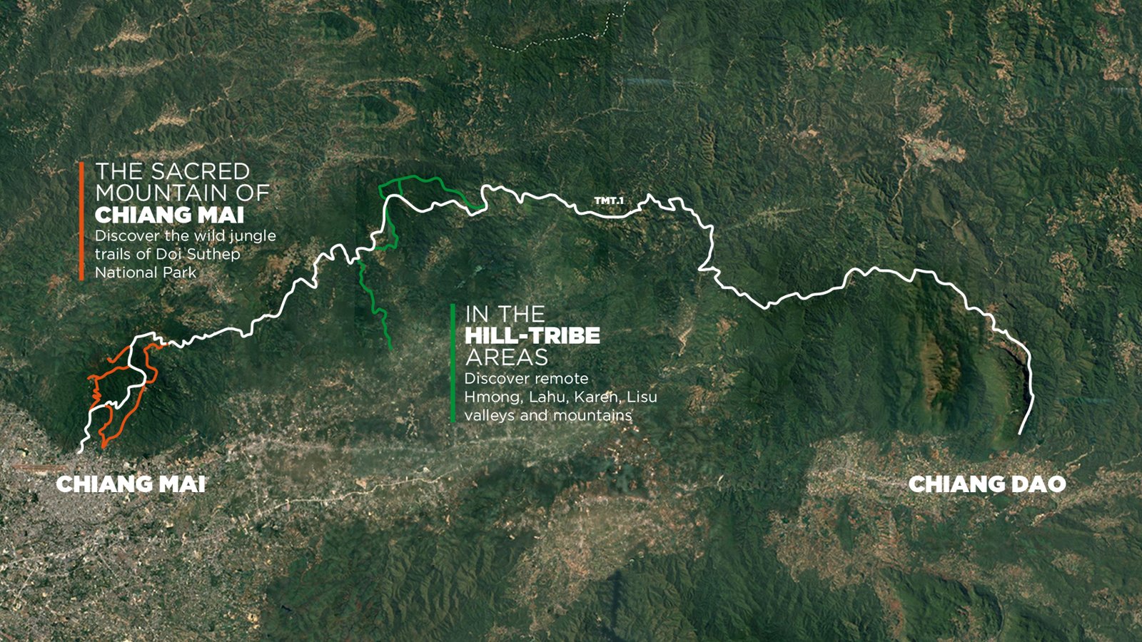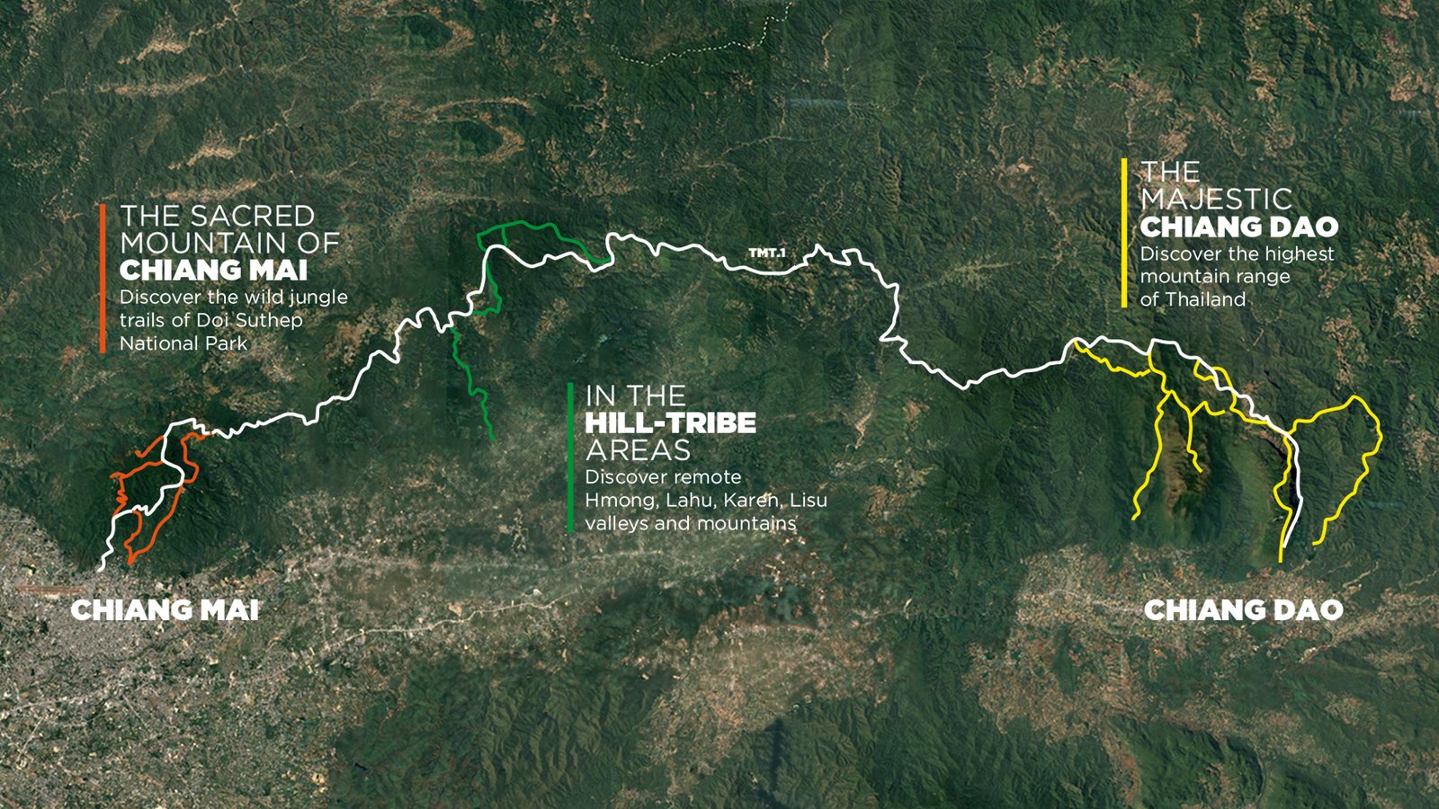 The greatest achievement of our agency is the creation of TMT.1, the longest hiking footpath of Thailand. The route links Chiang Mai city to the biggest mountain range of the country, Chiang Dao. Through wild jungle, stunning rice paddies and beautiful summits, TMT.1 goes through remote hill-tribe areas such as the Karen valleys or the Lahu and Hmong high countries. This is alongside this route we organize our trekking and running trips.